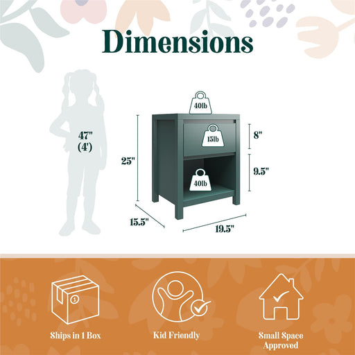 View full detailsSoft Charm: Designed in a soothing finish, this nightstand brings a gentle pop of color that brightens bedrooms, kids spaces, or reading corners w...