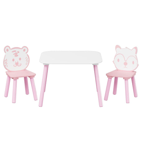 $7790Unit price /UnavailableTable And Chair Set, 3 Piece Wooden Toddler Desk With Animal Backrest - Pink / White