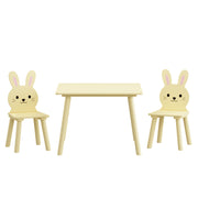Table And Chair Set With 2 Bunny Chairs, Children's Activity Table For Toddlers, Cute Animal Design - Yellow