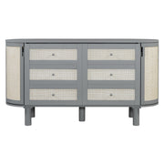 Sleek Drawer-Front Design: Camouflaged drawers with handwoven rattan accents blend rustic-modern charm into any décor. The minimalist yet functional front panels enhance aesthetics while discreetly concealing storage.