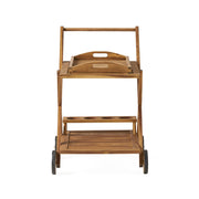 Riviera Bar Cart Stained Mobile With Wheels For Entertaining - Natural Stained