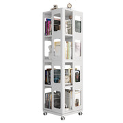 4 Tier All Steel Rotating Bookshelf With 360° Wheels, Large Size Sturdy & Spacious Book Rack, New Style Bookshelf - White