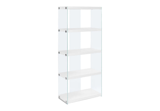 View full detailsStylish Design: This bookshelf features 4 fixed display shelves in glossy white with chic tempered glass sides, creating an inviting and spac...