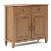 - Features 2 drawers for keys, gloves, hats and other items and 2 doors with large interior storage and interior adjustable shelves