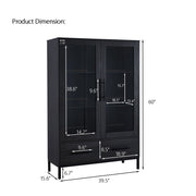 Modern Style Tall Display Cabinet With LED Lighting, Tempered Glass Door, 2 Drawers - Black