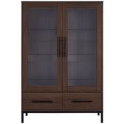 Modern Style Tall Display Cabinet With LED Lighting, Tempered Glass Door, 2 Drawers - Black / Dark Walnut