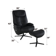 Labotina - Top Grain Leather Accent Chair With Swivel & Ottoman - Black