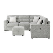 Emiliano - Sectional Sofa With 3 Pillows And Storage Ottoman - Nickel