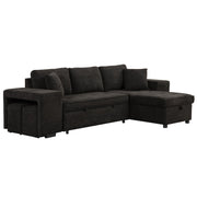 Modern L-Shape 3 Seat Reversible Sectional Couch, Pull Out Sleeper Sofa With Storage Chaise And 2 Stools For Living Room Furniture Set