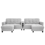 Sectional Sofa, U-Shaped With Movable Ottomans, Bluetooth Speakers, LED Lights, And Modular Storage - Light Gray