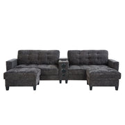 Modern Sectional Sofa U-Shaped With Movable Ottomans, tooth Speakers, LED Lights And Modular Storage