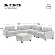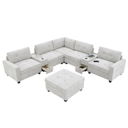 Sectional With Acrylic Table Top U Shaped Couch Set With 2 Consoles USB Charger, Storage Drawers And Pockets Movable Ottoman Tufted Sofa - Light Gray