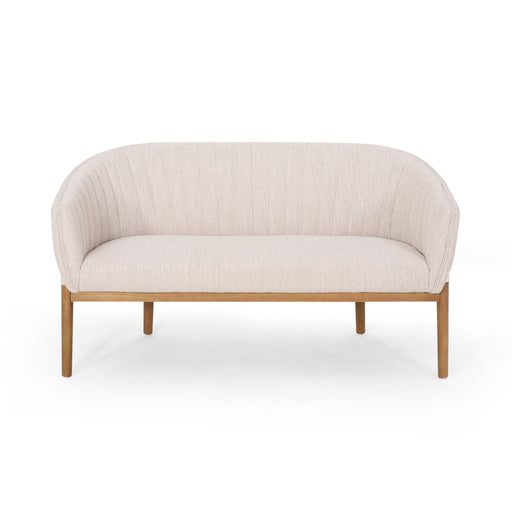 Mid Century Modern Loveseat With Polyester Upholstery And Birch Wood Frame - Beige
