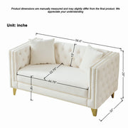 2 Seater Deep Seat Sofa, Sofa With Button Nailhead, Square Arm Couches, Furniture For Living Room - Beige
