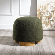 Round Soft Fabric Upholstered Ottoman With Padded Seat - Olive Green