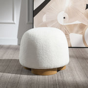 Round Soft Teddy Fabric Upholstered Ottoman With Metal Accents