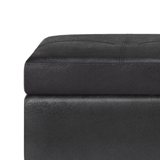 Upholstered with Midnight Black Vegan Faux Leather Constructed using solid wood, plywood, foam Features 1 middle flip over serving tray, 2 lift up...