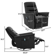 Manual Recliner Chair With 8 Point Massage And Swivel Function For Living Room - Black