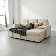 Convertible L Shaped Sectional Sleeper Sofa Bed, Saving Pull Out Couch - Beige
