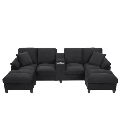 Modern U-Shaped Sectional Sofa With Storage Ottomans