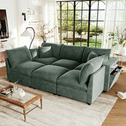 Sectional Modular Sofa, U-Shaped With Movable Ottoman, Storage Armrests And USB Ports - Green