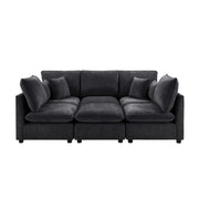 Sectional Modular Sofa, U-Shaped With Movable Ottoman, Storage Armrests And USB Ports - Black