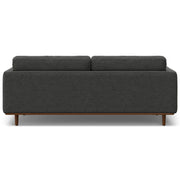 - The generously sized couch for features a single bench cushion with a high-density foam core wrapped in feathers, and loose back cushions and bolster pillows stuffed with a combination of feather and fiber filling for a feel.