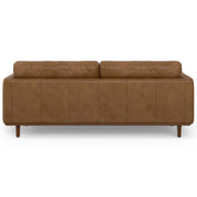 - Handcrafted with quality materials, both the couch and ottoman have sturdy, corner-blocked frames made with solid and engineered woods; webbing and high-gauge sinuous springs under the seat to prevent sagging; and solid wood legs and plinth in a brown finish.