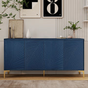 Modern 4 Door Sideboard With Creative Carved Surface And Adjustable Shelves - Light Blue