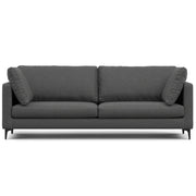 - The large, square throw pillows and 2 loose, reversible, extra-thick back cushions are stuffed with a combination of feather and fiber filling for a softer feel, while the armrests are covered in foam padding for a cozy seating experience.
