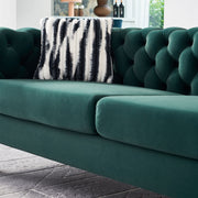 • Luxurious Design: button tufting along the back and sides, with striking metal legs adding a glamorous touch.