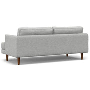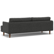 - Sturdy, corner-blocked frame made with solid and engineered woods includes high-quality, high-resilience webbing on the back to provide support; webbing and high-gauge sinuous springs under the seat to prevent sagging; and solid wood legs in a brown finish.