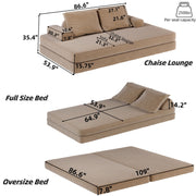 Multifunctional Convertible Sofa Bed With 2 Tumbler Backrests And 2 Pillows, Diy Modern Upholstered Couch - Camel