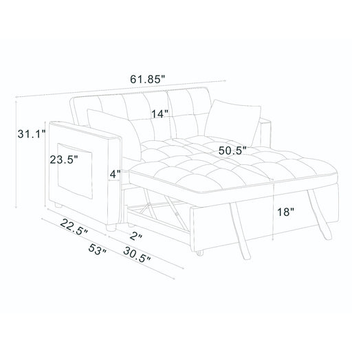 Pull Out Sofa Bed 3 In 1 Convertible Sleeper Sofa With Nailhead Trim & Rolled Arm, Multi Functional