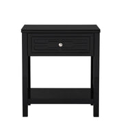 • The Dylan side table is the small storage piece for any living space. Its tempered glass top provides a contrasting material to the tabletop. A bottom open shelf easily allows you to retrieve your books or display your sentimental items. The one drawer keeps your essentials stored away and the groove detailing adds a decorative element while placed next to your bed as a nightstand or by your living room sofa as an end table. Available in other colors that will complement your home's specific decor.