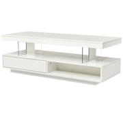 LED Coffee Table With Storage, Modern Center Table With 2 Drawers And Display Shelves, Accent Furniture With LED Lights For Living Room - White