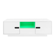 Modern High Glossy Rectangle Coffee Table, Accent Furniture With 16 Color LED Lights For Living Room - White
