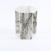 Hexagon Side Table Geometric Stone With Veining Polished Pedestal Nightstand For Living Room - White / Multi