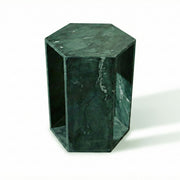 Hexagon Side Table Geometric Stone With Veining Polished Pedestal Nightstand For Living Room - Green