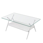 Rectangle Coffee Table With Tempered Glass Top And Metal Legs, Modern Table For Living Room - Transparent / White