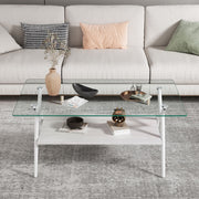 Rectangle Coffee Table With Tempered Glass Top And Shelf