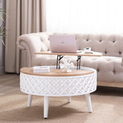 - Lift-Top Coffee Table with Storage – Round tabletop lifts smoothly to reveal a hidden storage compartment, perfect for keeping remotes, books, and living room essentials organized.