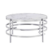 Chrome Round Coffee Table With Sintered Stone Top & Sturdy Metal Frame, Modern Coffee Table For Living Room - Silver