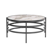 Round Coffee Table With Sintered Stone Top & Sturdy Metal Frame, Modern Coffee Table For Living Room - Darker Gray