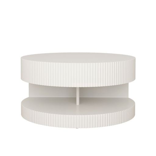 Round Coffee Table With Storage - White / Light Oak