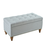 Elegant Ottoman Storage Bench With Recessed Support Hinge, Rivet Trim Linen - Gray