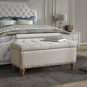 Elegant Ottoman Storage Bench With Recessed Hinge And Rivet Trim Linen - Beige