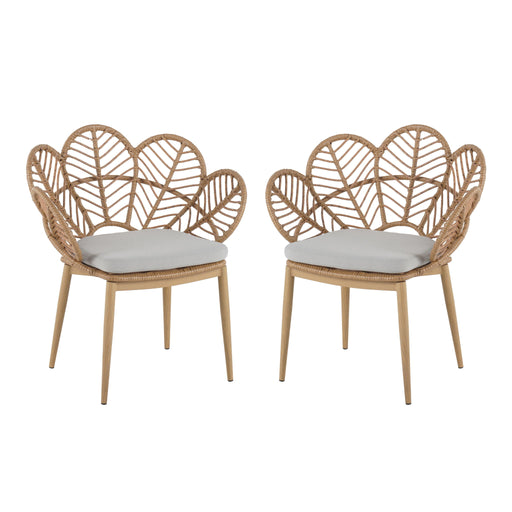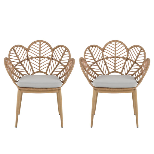 Kirk - Outdoor Wicker Peacock Shape Papasan Style Chair, Teak Finished Leg (Set of 2) - Beige / Light Brown / Light Teak