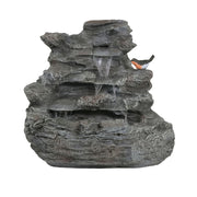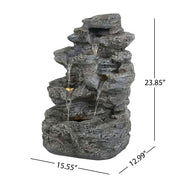 4 Tiered Rock Waterfall Fountain With LED Lights, Outdoor Garden Decor, Weather Resistant - Gray