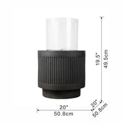 Heavy Cement Round Ribbed Outdoor Water Fountain With Light - Black White